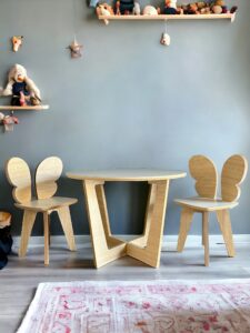 Combo ROMA kids – Mesa roma 70 roble + banquitos kids blancos