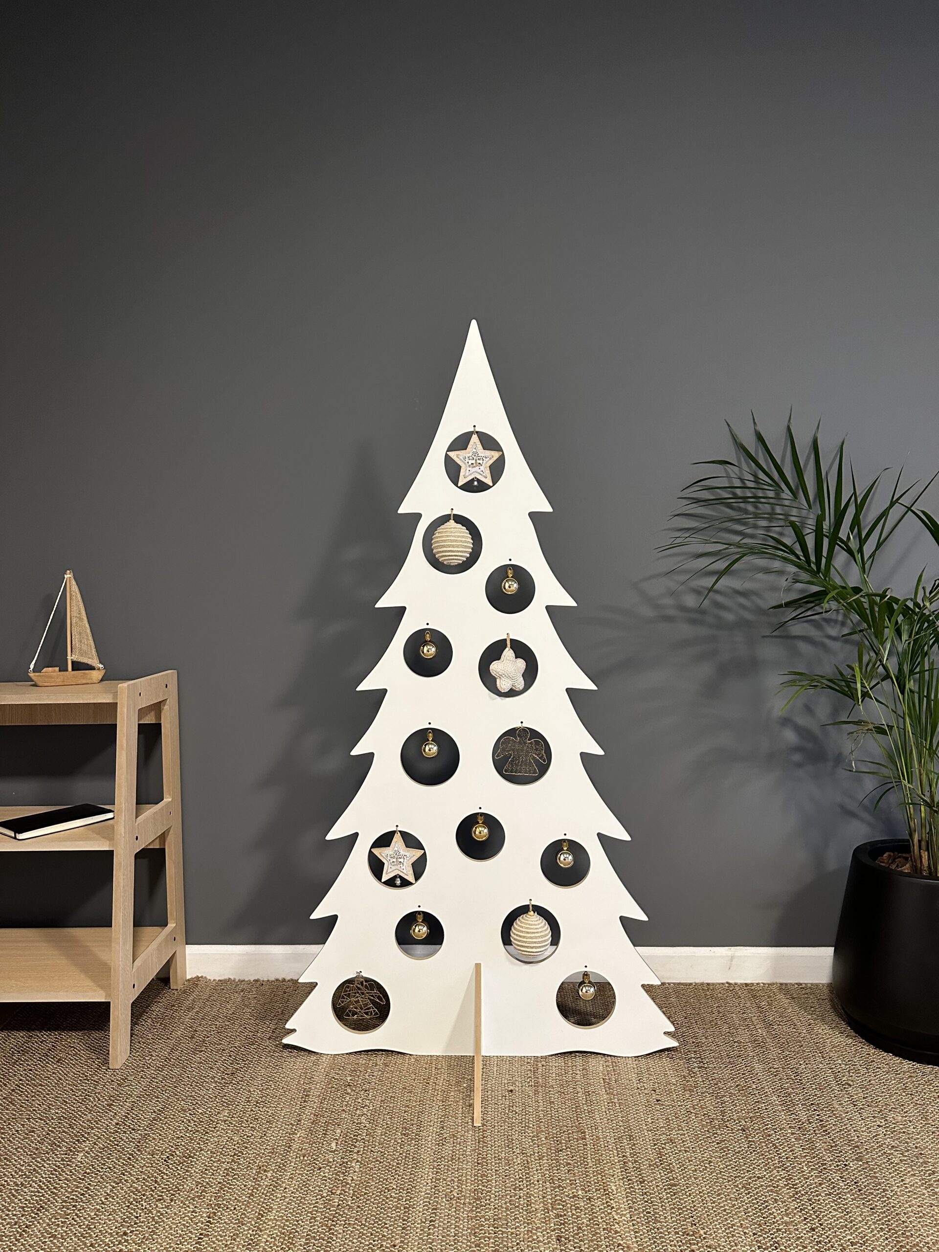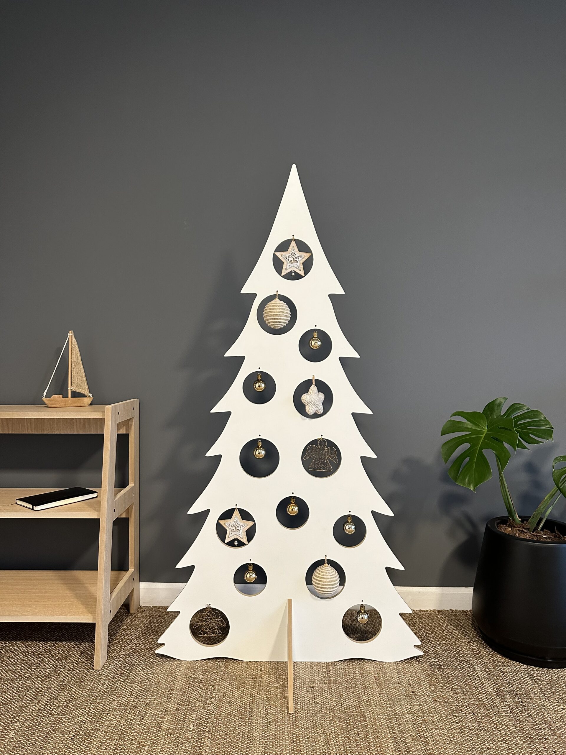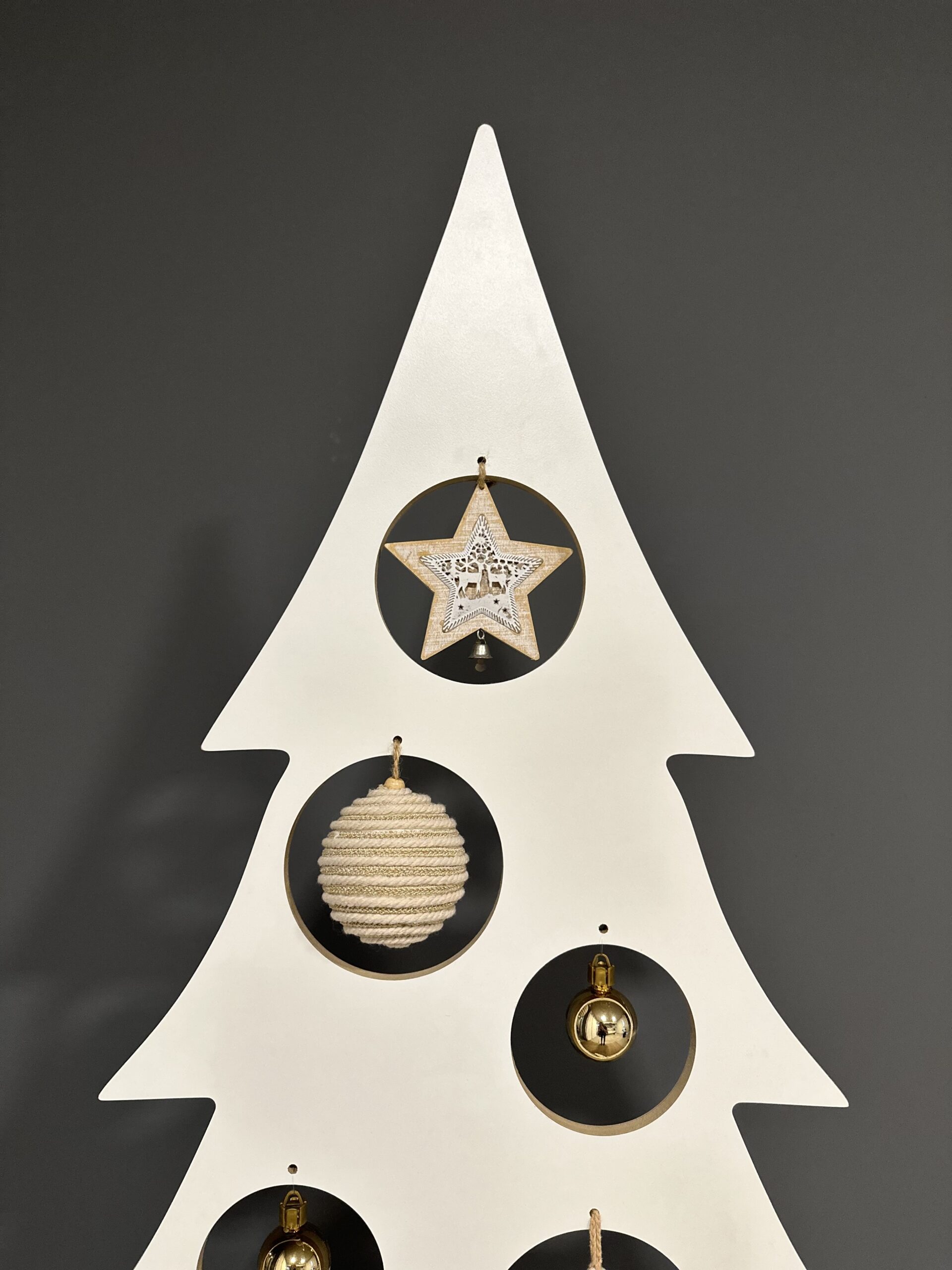 Armado. Por encastre y los adornos se cuelgan de los agujeros que trae la pieza principal.
