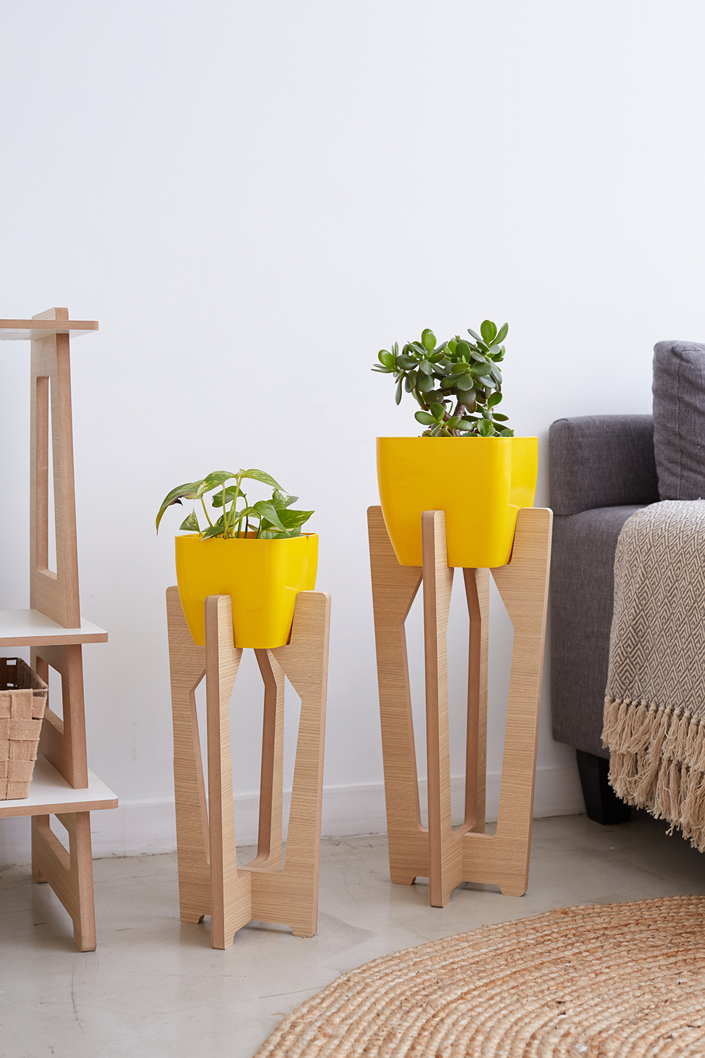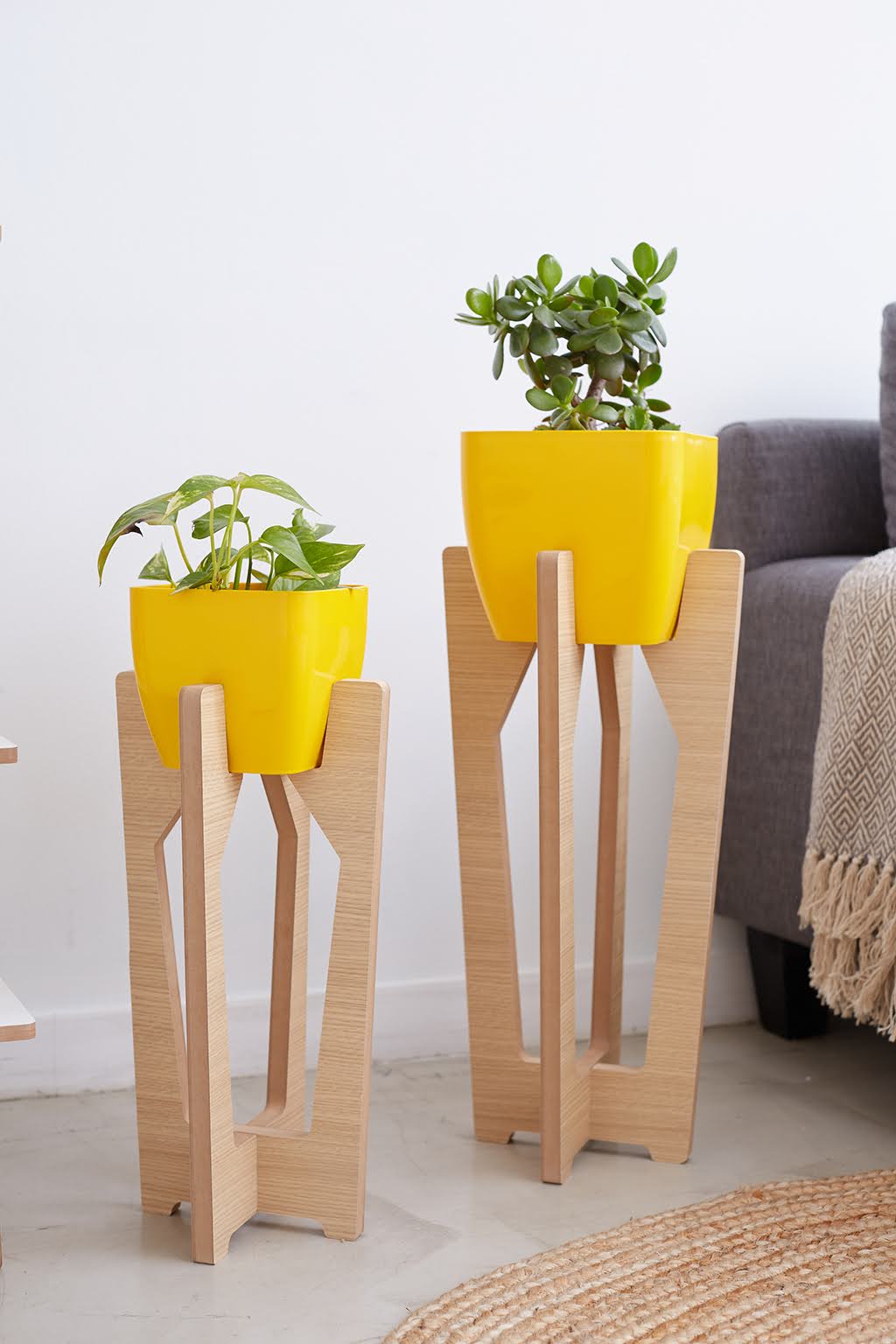 El combo incluye ambos portamacetas + ambas macetas plásticas premium.